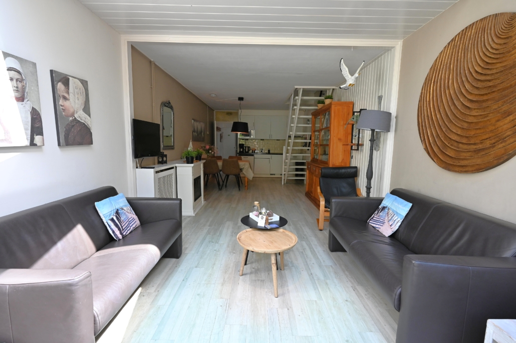 Ind.: woonkamer ( 30m2) met sierschouw met elektrisch kacheltje, LCD kabel t.v. met buitenlandpakket (HDMI), DVD speler en WIFI, open keuken met inbouwapparatuur zoals magnetron, vaatwasmachine, koelkast met vriesvakje (of een los vrieskastje), badkamer met douche/wastafel/toilet, bijkeuken met losse oven, c.v.-opstelling, wasmachine.