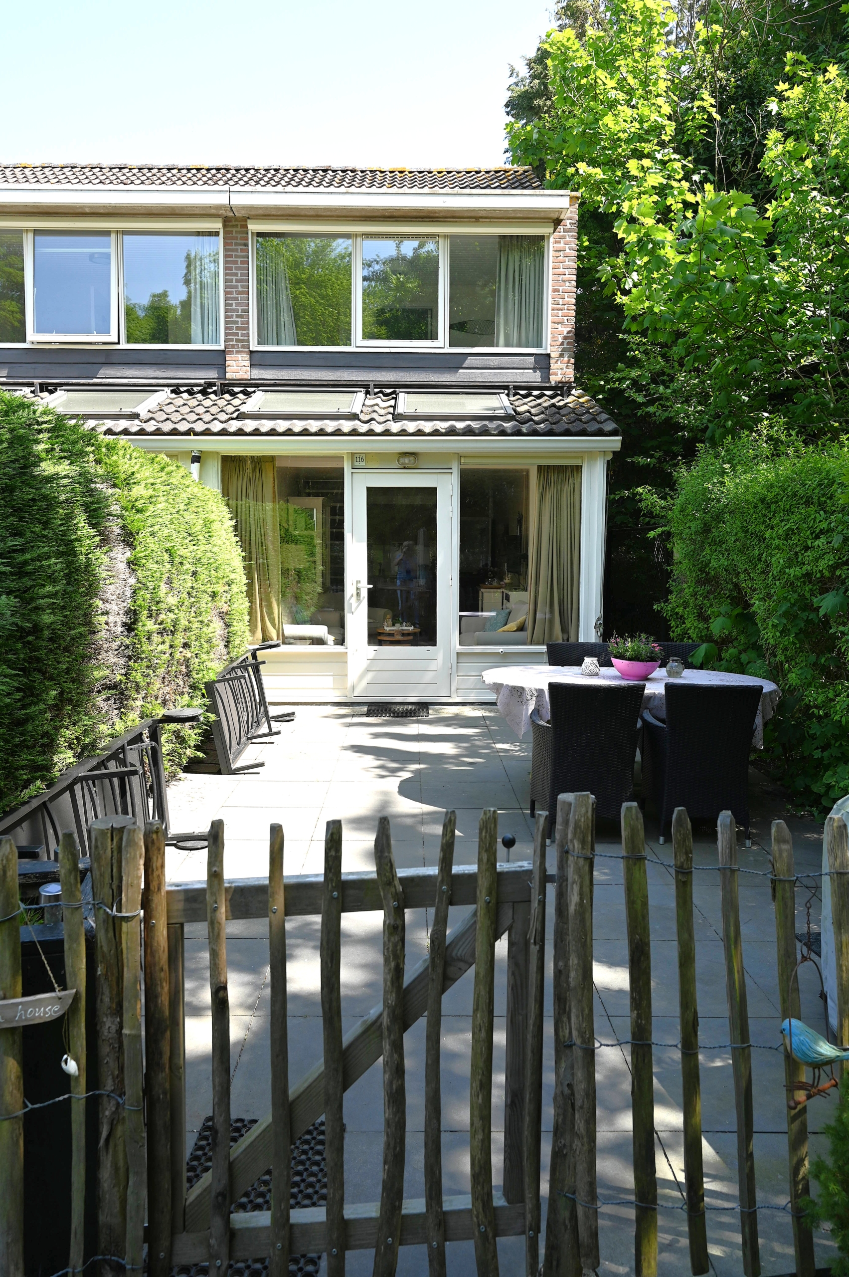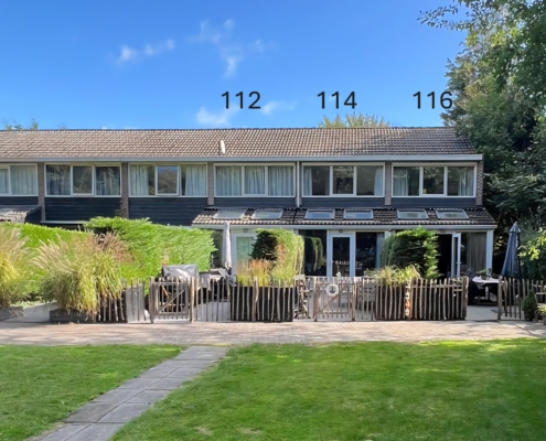 In 2023 hebben we de terrassen afgesloten dmv een houten schapenhekje, zodat de honden vrij kunnen lopen op het eigen terras. En WH 116 heeft een nieuwe keuken gekregen met oven.