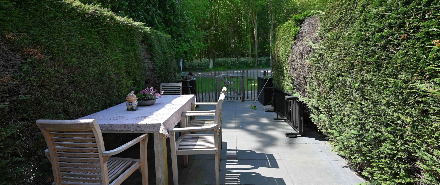 • Eigen terras met tuinstoelen set met parasol, 2 nieuwe ligbedden (2022) en prachtig uitzicht op de bossen en de duinen. BBQ aanwezig.
