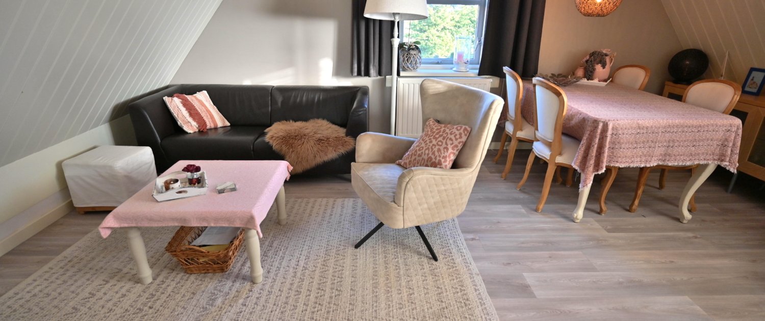 Klein maar gezellig appartement voor maximaal 2 personen boven onze dubbele garage met een prive opgang en een eigen grote tuin.